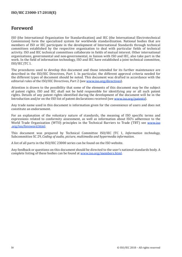 ISO/IEC 23000-17:2018 is classified under the following ICS (International Classification for Standards) categories: 35.040 - Information coding; 35.040.40 - Coding of audio, video, multimedia and hypermedia information. The ICS classification helps identify the subject area and facilitates finding related standards.