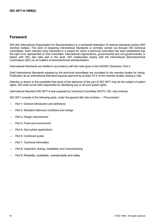 ISO 3977-9:2024 - Gas turbines — Procurement — Part 9: Reliability, availability and maintainability - Effective Date
