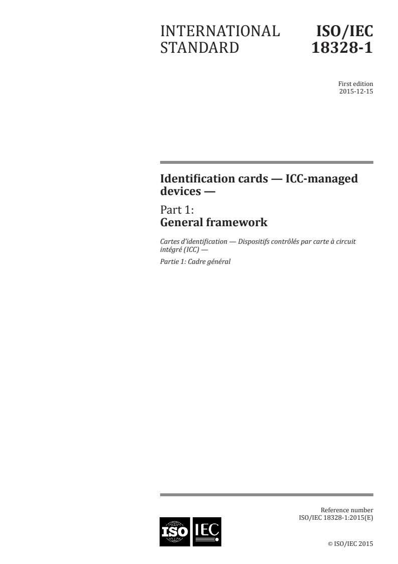 ISO/IEC 18328-1:2015 - Identification cards — ICC-managed devices — Part 1: General framework/3/2015