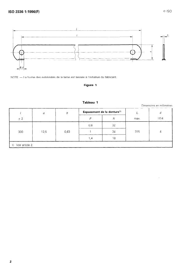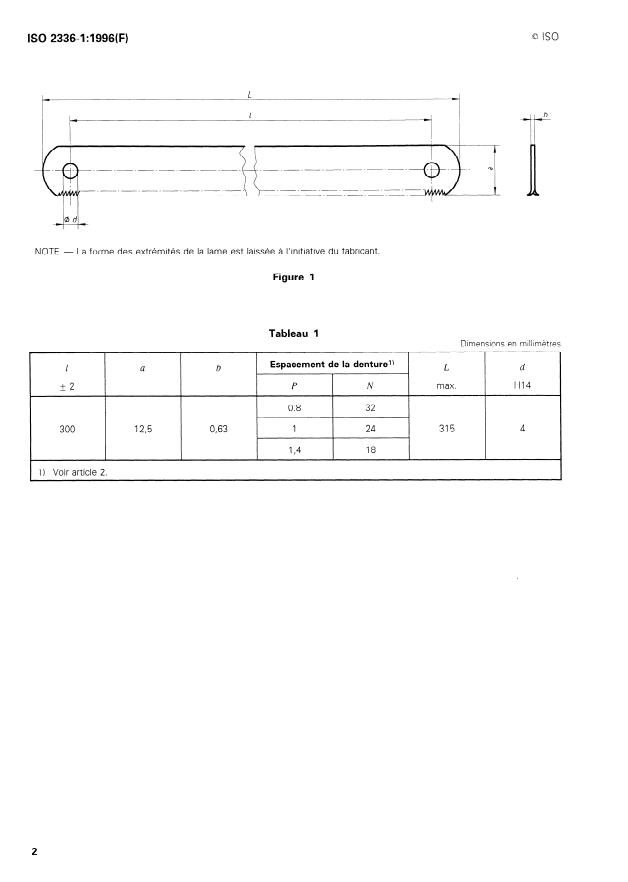 - ISO 2336-2:1996 - Hacksaw blades: Part 2 - Dimensions for machine blades (complements Part 1).