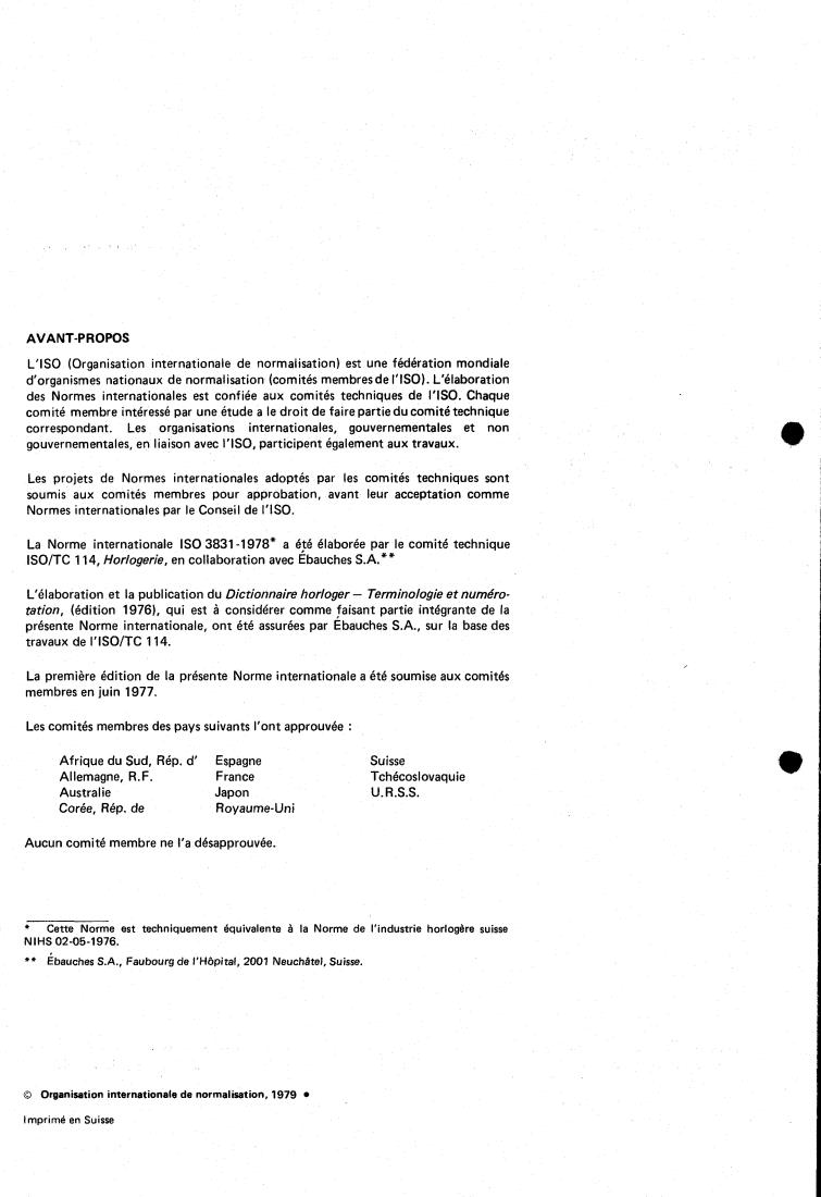présente Norme internationale, ont été assurées par Ebauches S.A., sur la base des