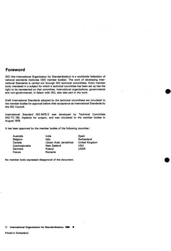 ISO 6475-2:1980 is classified under the following ICS (International Classification for Standards) categories: 11.040.40 - Implants for surgery, prosthetics and orthotics. The ICS classification helps identify the subject area and facilitates finding related standards.