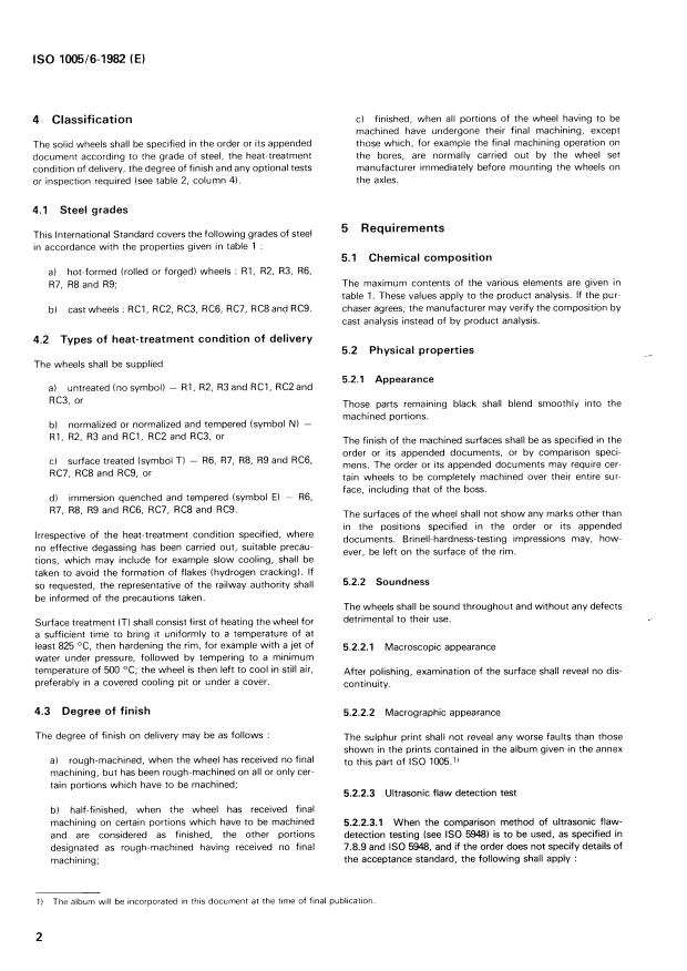 ISO 1005-6:1982 is a standard published by the International Organization for Standardization (ISO). Its full title is "Railway rolling stock material — Part 6: Solid wheels for tractive and trailing stock — Quality requirements". This standard covers: Railway rolling stock material — Part 6: Solid wheels for tractive and trailing stock — Quality requirements