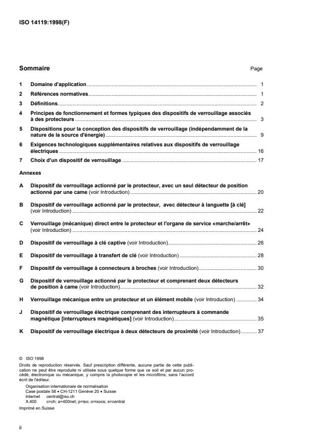 International Standard ISO 14119 was prepared by Technical Committee ISO/TC 199, Safety of machinery.