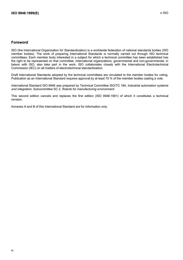ISO 9946:1999 - Manipulating industrial robots -- Presentation of characteristics
