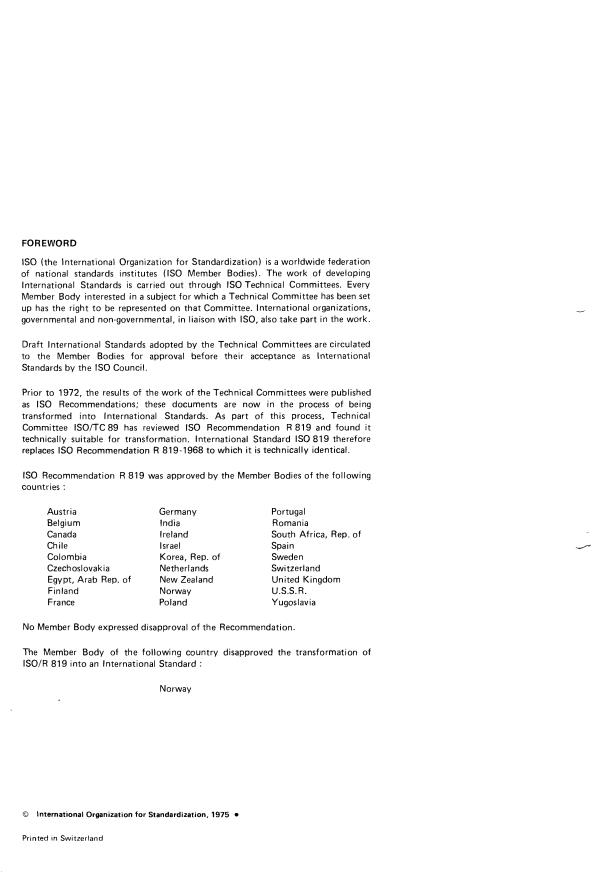 replaces IS0 Recommendation R 819-1968 to which it is technically identical.