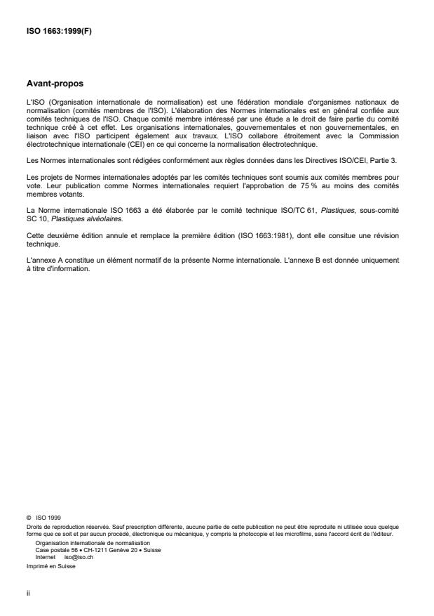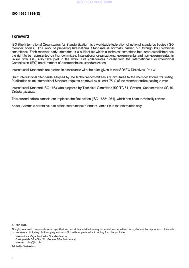 ISO 1663:1999 is a standard published by the International Organization for Standardization (ISO). Its full title is "Rigid cellular plastics — Determination of water vapour transmission properties". This standard covers: Rigid cellular plastics — Determination of water vapour transmission properties