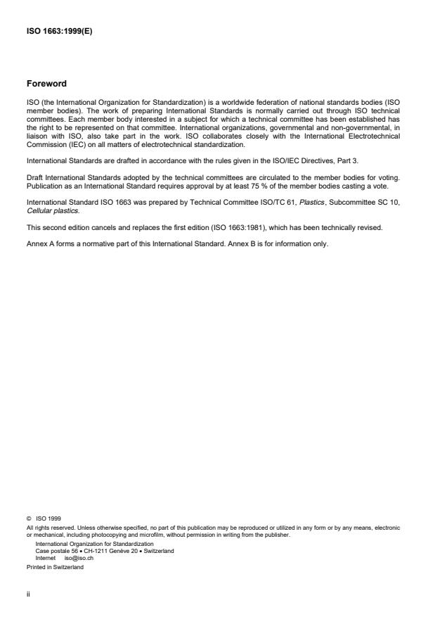 ISO 1663:1999 is classified under the following ICS (International Classification for Standards) categories: 83.100 - Cellular materials. The ICS classification helps identify the subject area and facilitates finding related standards.