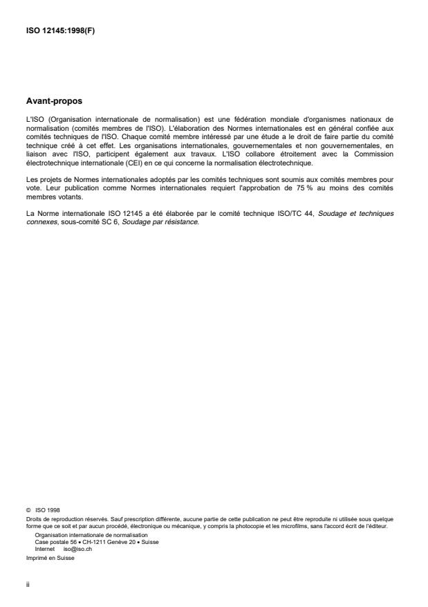 La Norme internationale ISO 12145 a été élaborée par le comité technique ISO/TC 44, Soudage et techniques