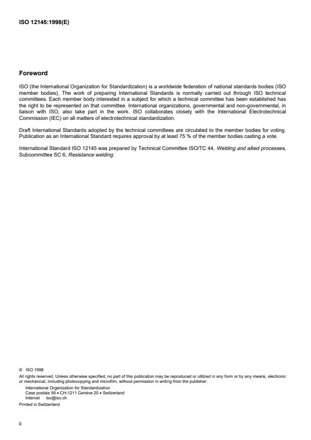 International Standard ISO 12145 was prepared by Technical Committee ISO/TC 44, Welding and allied processes,
