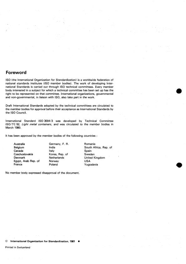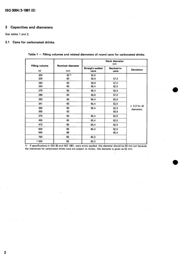 ISO 3004-3:1981 - Hermetically sealed metal containers for food and drinks — Part 3: Cans for drinks Released:4/1/1981