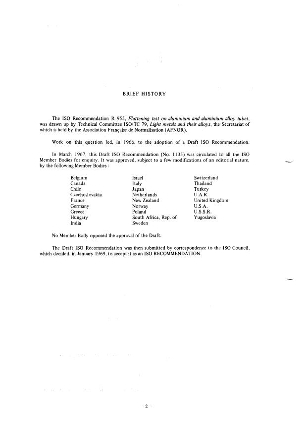 ISO/R 955:1969 - Flattening test on aluminium and aluminium alloy tubes
