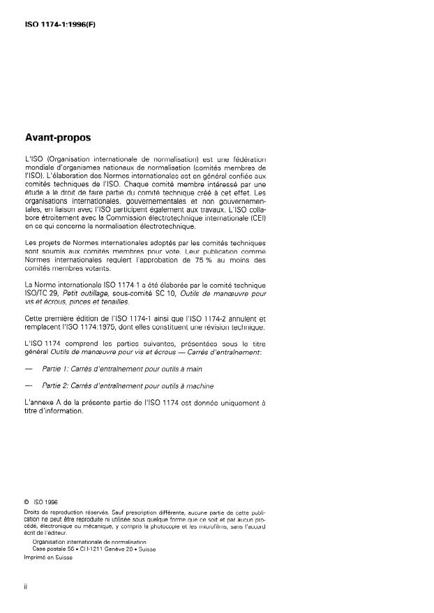 ISO 1174-1:1996 - Outils de manoeuvre pour vis et écrous -- Carrés d'entraînement