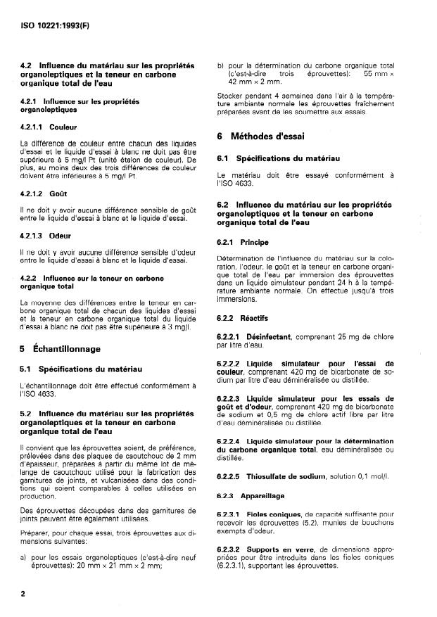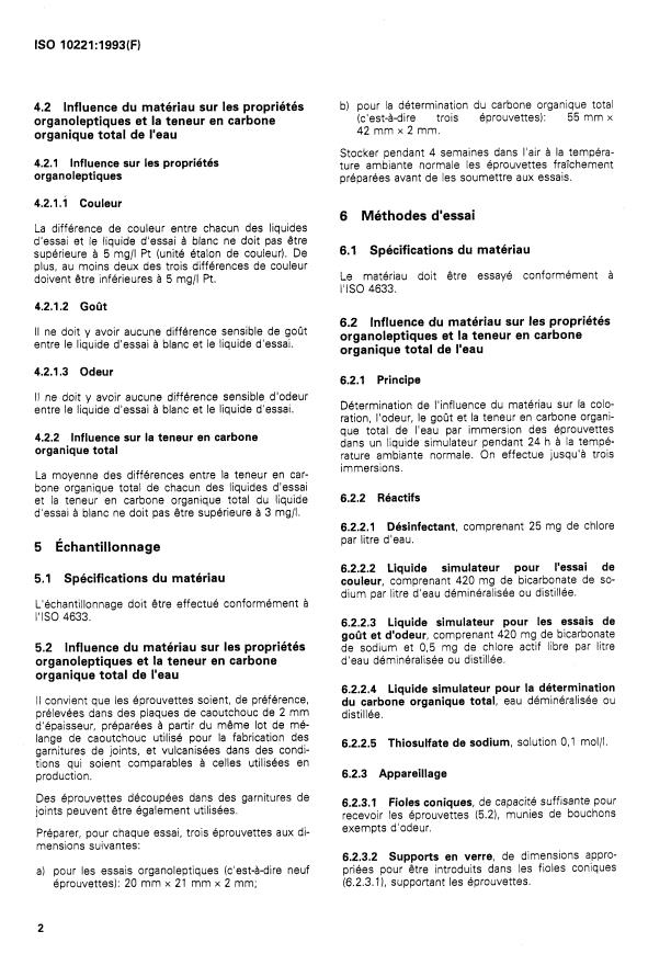 ISO 10221:1993 is a standard published by the International Organization for Standardization (ISO). Its full title is "Ductile iron pipelines — Rubber sealing rings for pipelines carrying potable water". This standard covers: Lays down the material specifications of solid vulcanized rubber sealing rings and specifies requirements for their effect on the organoleptic properties (colour, taste and odour) and the total organic carbon content of water. In the case of composite seals (which comprise, e.g. both rigid and flexible rubbers), applies only to the requirement for their effect on the total organic carbon content of water.