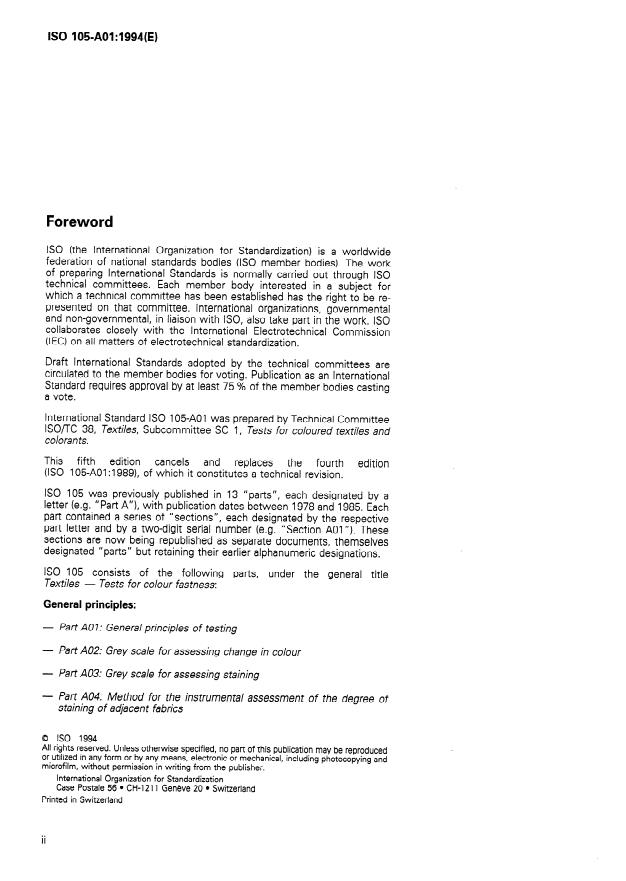ISO 105-A01:1989 - Textiles — Tests for colour fastness — Part A01: General principles of testing - Effective Date