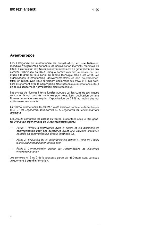 ISO 9921-1:1996 - Évaluation ergonomique de la communication parlée
