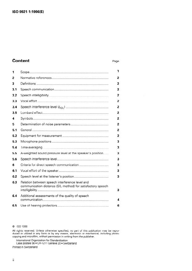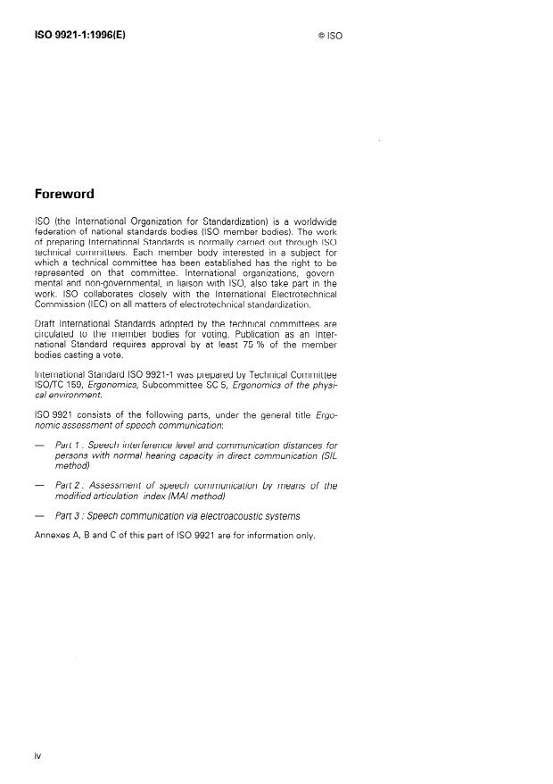 ISO 9921-1:1996 - Ergonomic assessment of speech communication