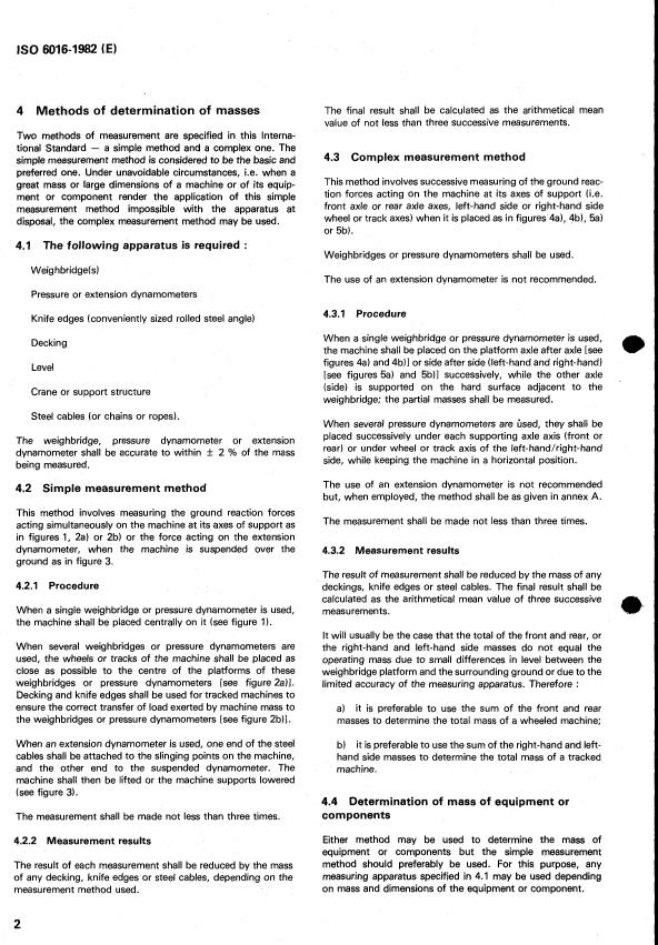 ISO 6016:1982 - Earth-moving machinery -- Methods of measuring the masses of whole machines, their equipment and components