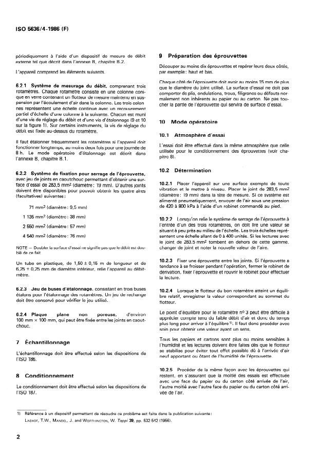 Papier et carton - Ddtermination de la perm6abilit6 2 l’air (valeur moyenne) - Partie 4: M&ode Sheffield