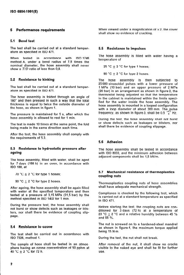 ISO 6804:1991 is a standard published by the International Organization for Standardization (ISO). Its full title is "Rubber and plastics inlet hoses and hose assemblies for washing-machines and dishwashers — Specification". This standard covers: Specifies requirements for two types of hoses. Type 1: for unheated water supply only. Type 2: for heated water supply (max. 90°C). This second edition cancels and replaces the first edition (1982).