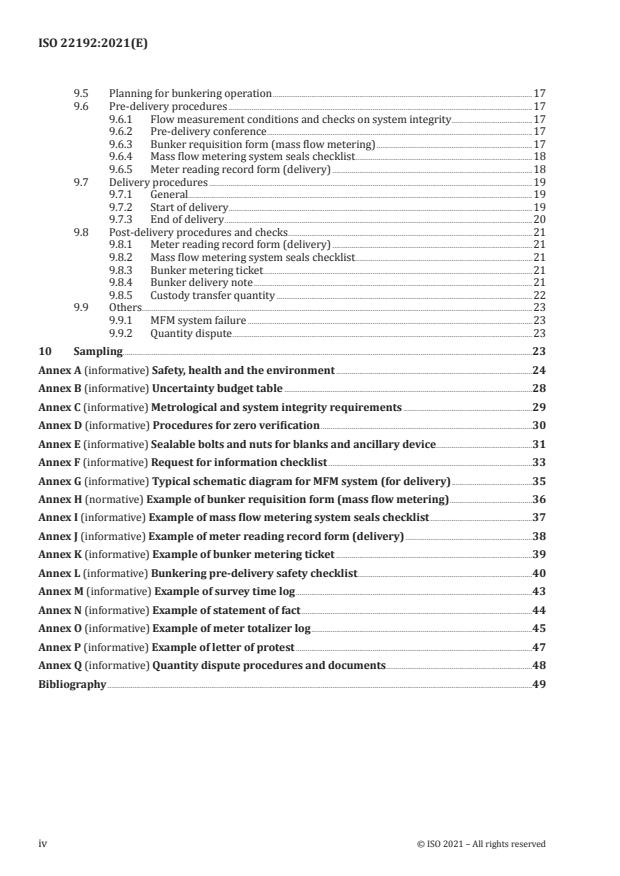 - Metering procedures and documentation - pre-delivery planning, pre‑/post‑delivery checklists, meter reading records, bunker metering ticket, delivery note and custody transfer quantity calculation (Clause 9; Annexes H–K).