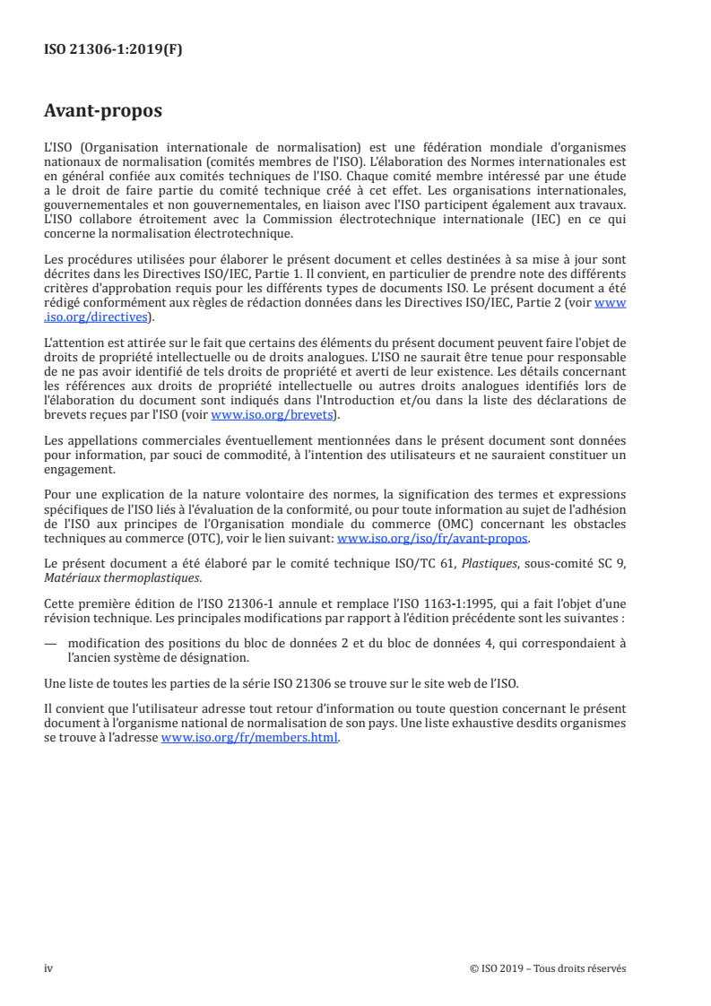 Cette première édition de l’ISO 21306-1 annule et remplace l’ISO 1163-1:1995, qui a fait l’objet d’une