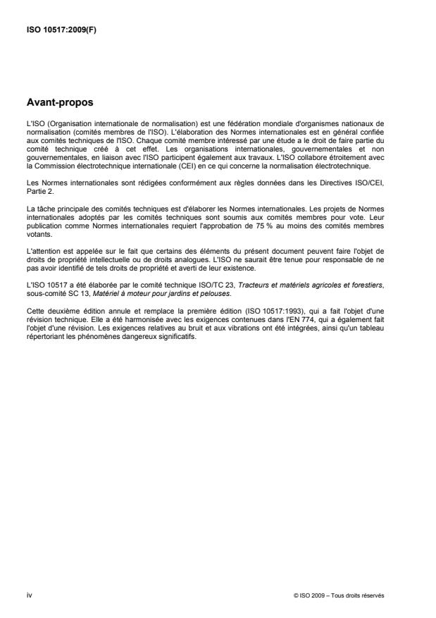 L'ISO 10517:2009 spécifie des exigences de sécurité pour la conception et la construction des taille-haies portatifs à moteur thermique intégré, par la suite nommés taille-haies, conçus pour être utilisés par un opérateur pour tailler les haies et les arbustes, et comportant une ou plusieurs lames de coupe à mouvement linéaire alternatif. Elle spécifie également le mode de vérification de ces exigences. L'ISO 10517:2009 établit des méthodes permettant d'éliminer ou de réduire les phénomènes dangereux inhérents à leur utilisation. En outre, elle spécifie le type d'informations que le fabricant doit donner sur les pratiques d'utilisation sûres. L'ISO 10517:2009 traite de tous les événements et phénomènes dangereux significatifs spécifiques des taille-haies portatifs à moteur lorsqu'ils sont utilisés normalement. L'ISO 10517:2009 ne traite pas de la limitation du niveau sonore pendant la phase de conception. Elle n'est applicable ni aux taille-haies motorisés à plus de 80 cm3, ni aux taille-haies fabriqués avant sa date de publication.