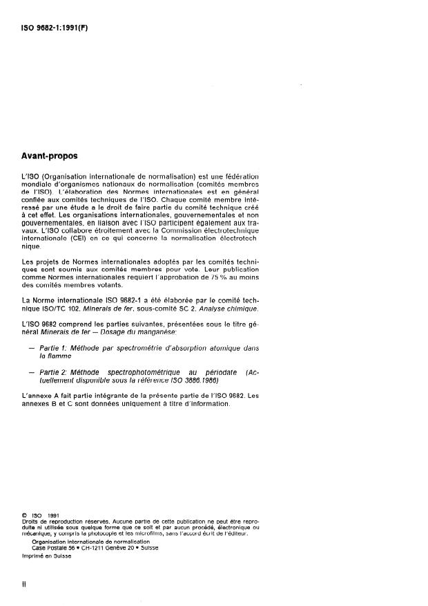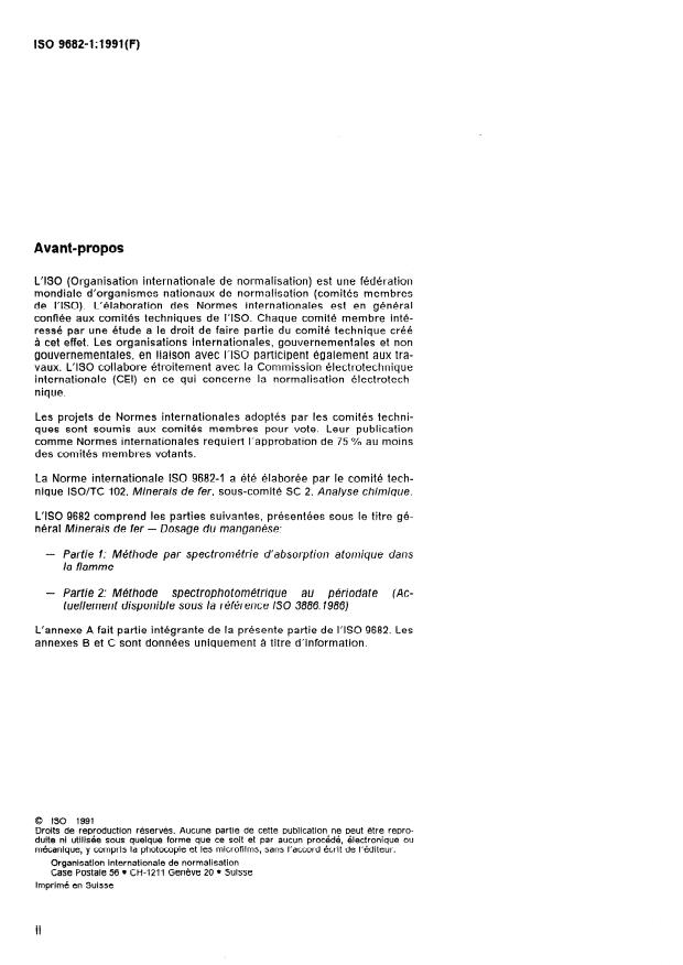 ISO 9682-1:1991 - Minerais de fer -- Dosage du manganese