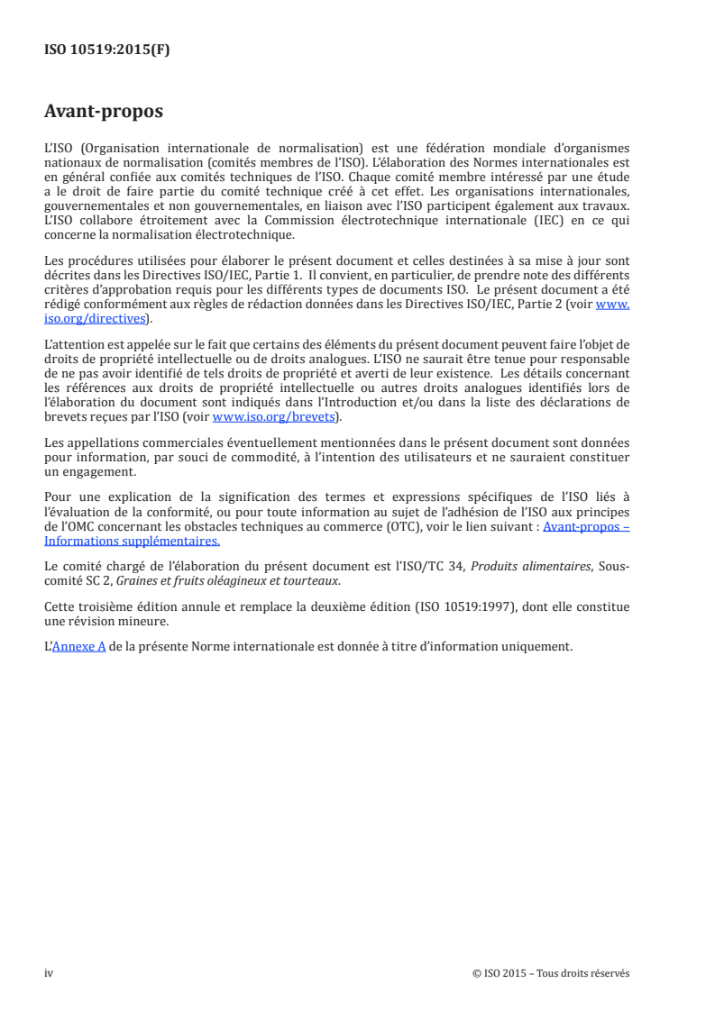 ISO 10519:2015 - Graines de colza — Détermination de la teneur en chlorophylle — Méthode spectrométrique/16/2015