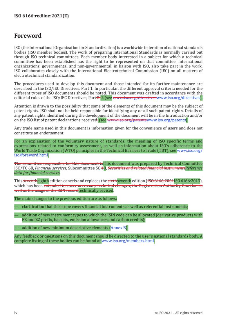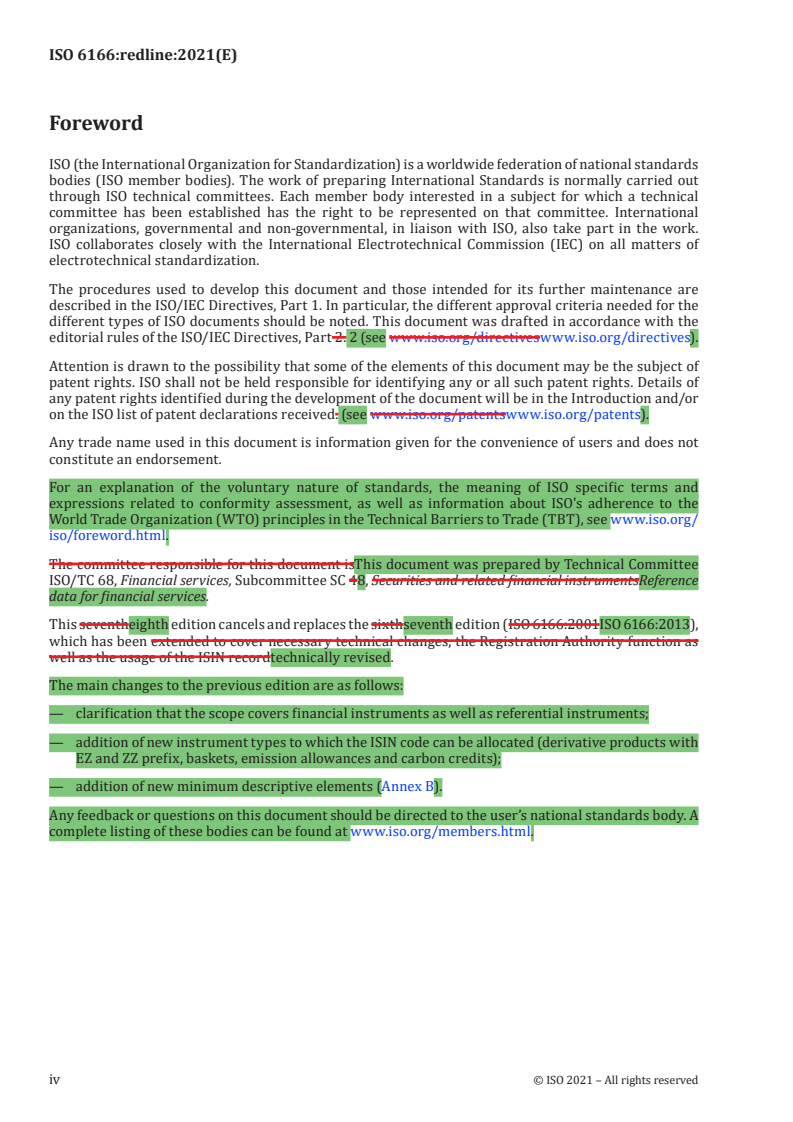 REDLINE ISO 6166:2021 - Financial services — International securities identification number (ISIN) Released:2/2/2021