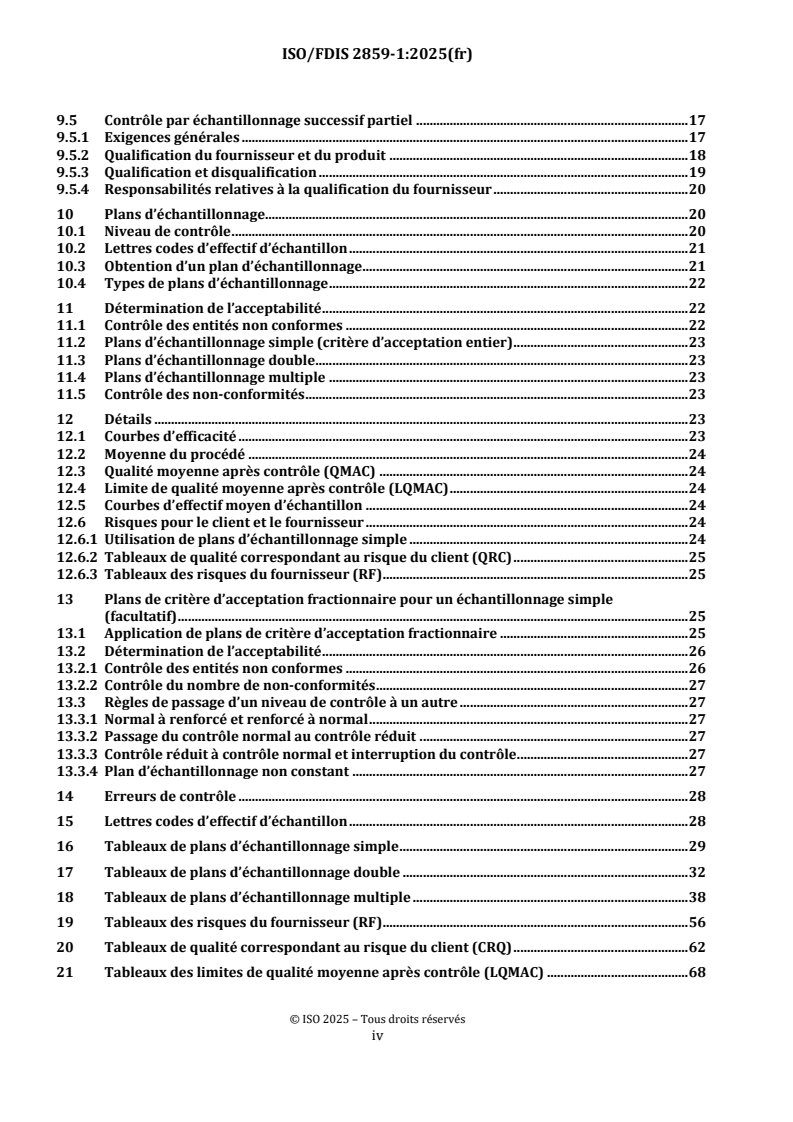 ISO/FDIS 2859-1 - Règles d’échantillonnage pour les contrôles par attributs — Partie 1: Procédures d’échantillonnage pour les contrôles lot par lot, indexés d’après le niveau de qualité acceptable (NQA) Released:12. 11. 2025