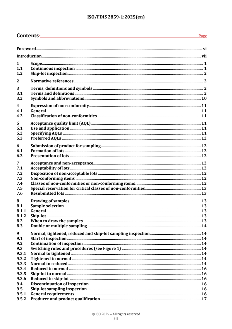 REDLINE ISO/FDIS 2859-1 - Sampling procedures for inspection by attributes — Part 1: Sampling schemes indexed by acceptance quality limit (AQL) for lot-by-lot inspection Released:10/3/2025