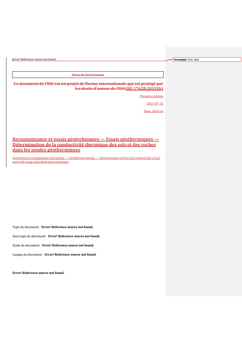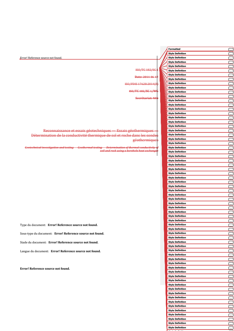 REDLINE ISO 17628:2015 - Reconnaissance et essais géotechniques — Essais géothermiques — Détermination de la conductivité thermique des sols et des roches dans les sondes géothermiques/5/2024