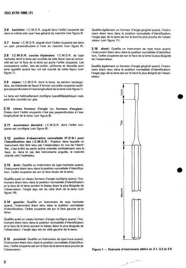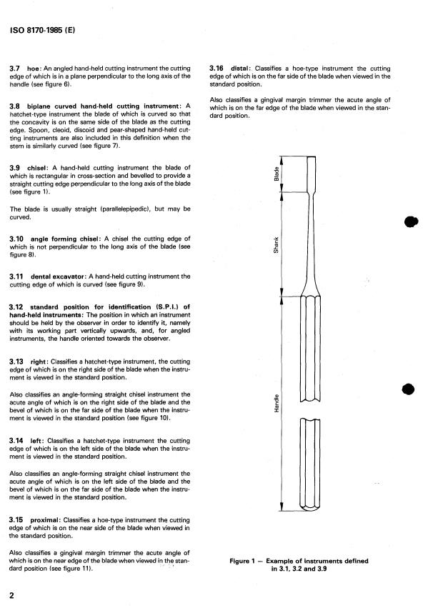 ISO 8170:1985 is a standard published by the International Organization for Standardization (ISO). Its full title is "Dental hand instruments — Hand-held cutting instruments for restorative dentistry — Designation and marking of dimensional characteristics". This standard covers: Dental hand instruments — Hand-held cutting instruments for restorative dentistry — Designation and marking of dimensional characteristics