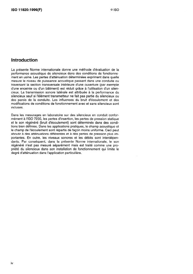 ISO 11820:1996 - Acoustique -- Mesurages sur silencieux in situ