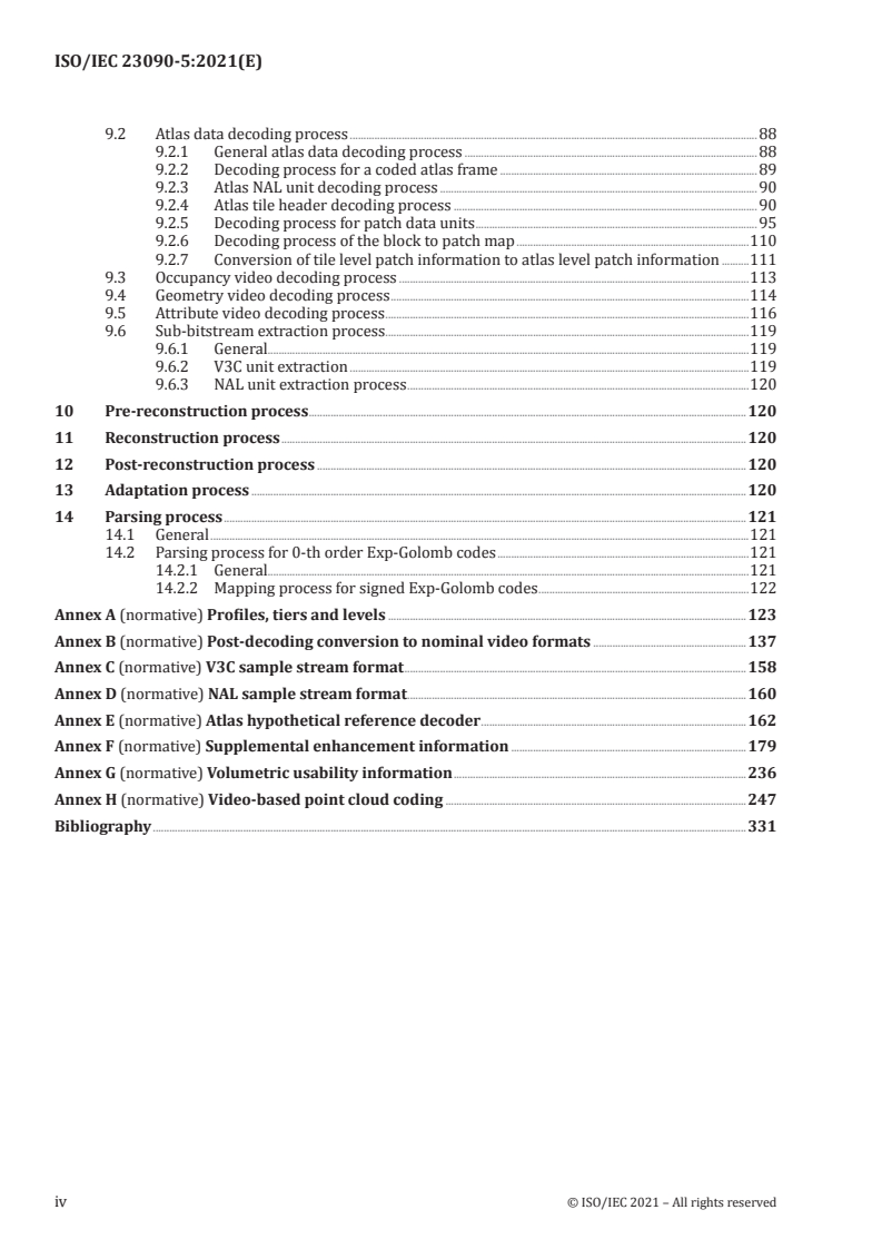 ISO/IEC 23090-5:2021 - Information technology — Coded representation of immersive media — Part 5: Visual volumetric video-based coding (V3C) and video-based point cloud compression (V-PCC) Released:6/18/2021