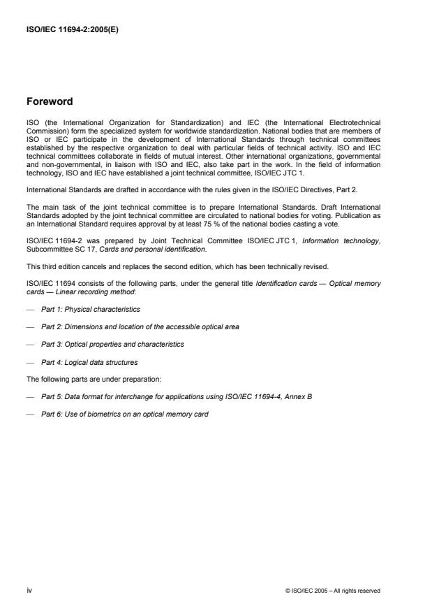 ISO/IEC 11694 consists of the following parts, under the general title Identification cards — Optical memory