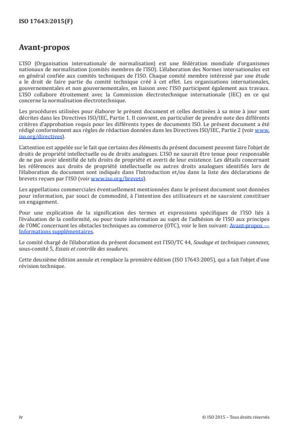Cette deuxième édition annule et remplace la première édition (ISO 17643:2005), qui a fait l’objet d’une