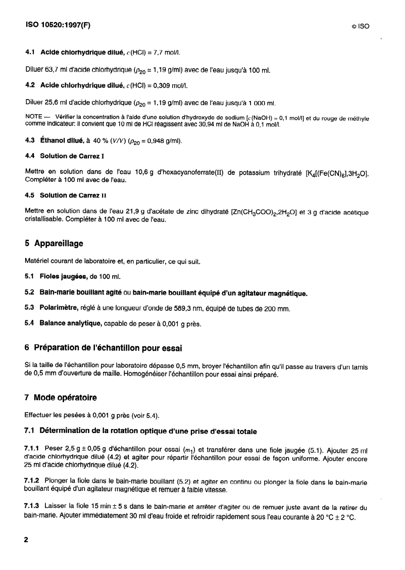 ISO 10520:1997 - Amidons et fécules natifs — Dosage de l'amidon — Méthode polarimétrique de Ewers Released:8/28/1997