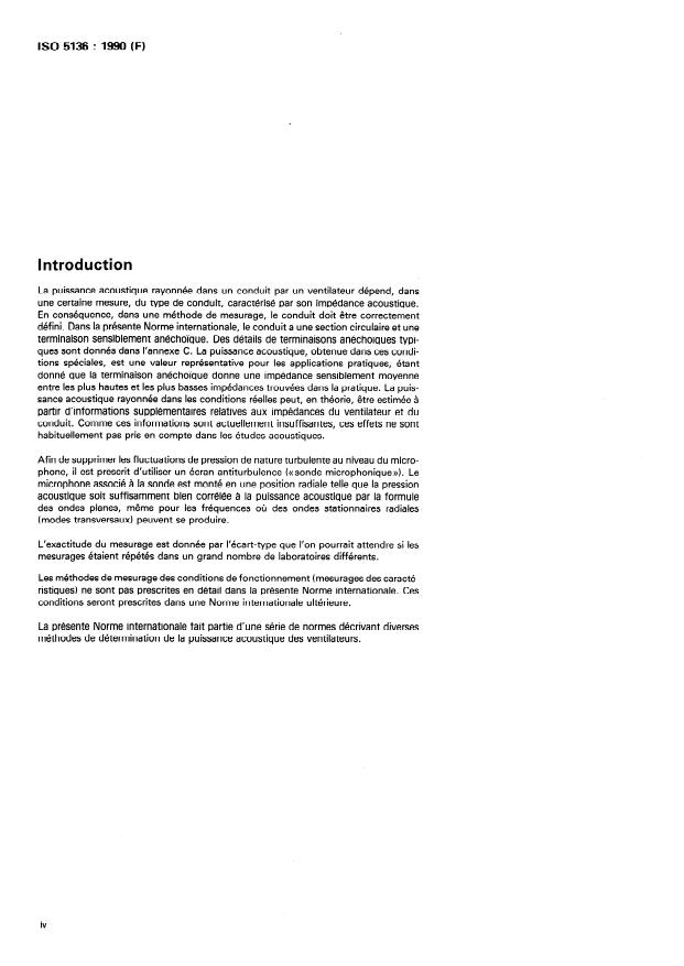 ISO 5136:1990 - Acoustics -- Determination of sound power radiated into a duct by fans -- In-duct method