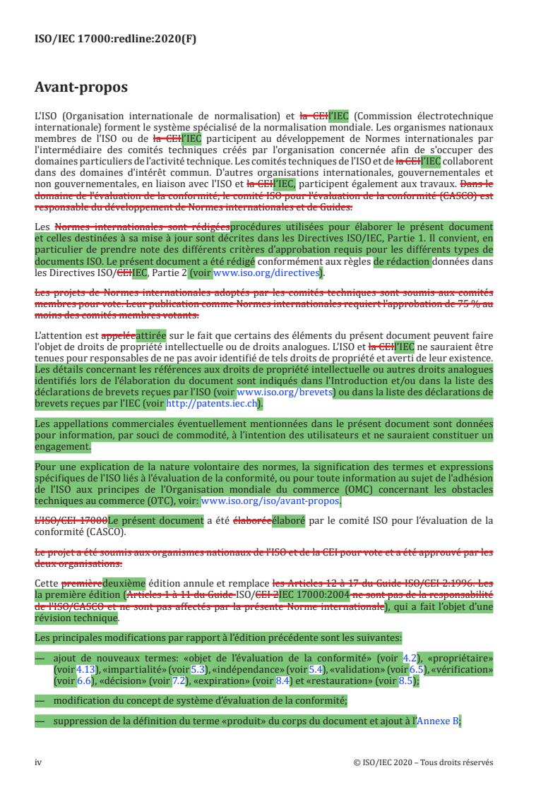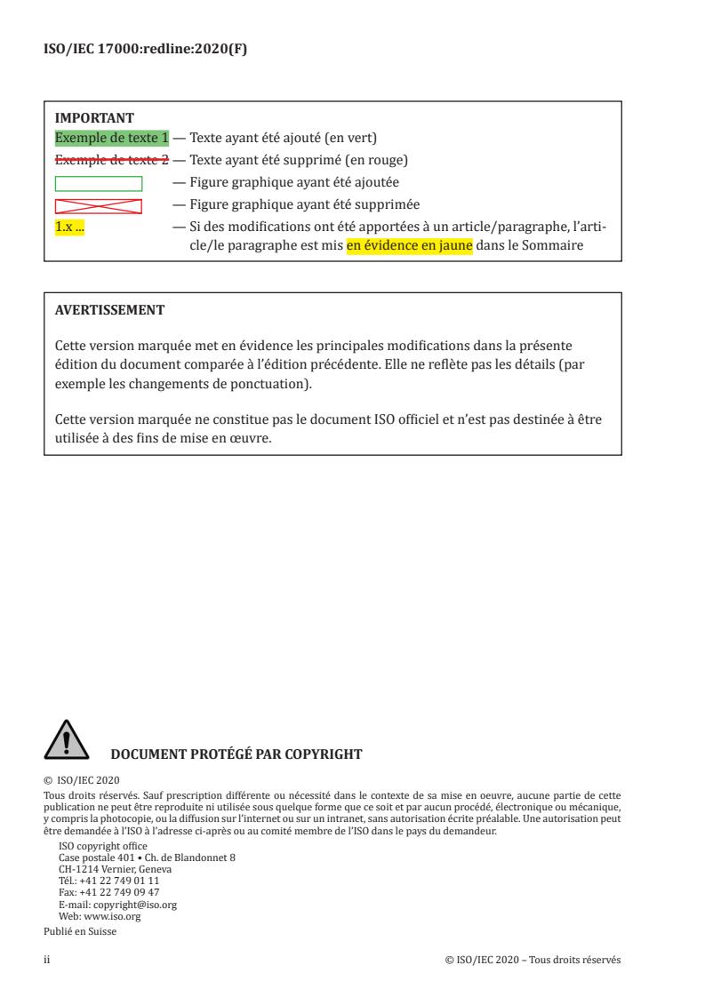 REDLINE ISO/IEC 17000:2020 - Évaluation de la conformité — Vocabulaire et principes généraux Released:12/1/2020