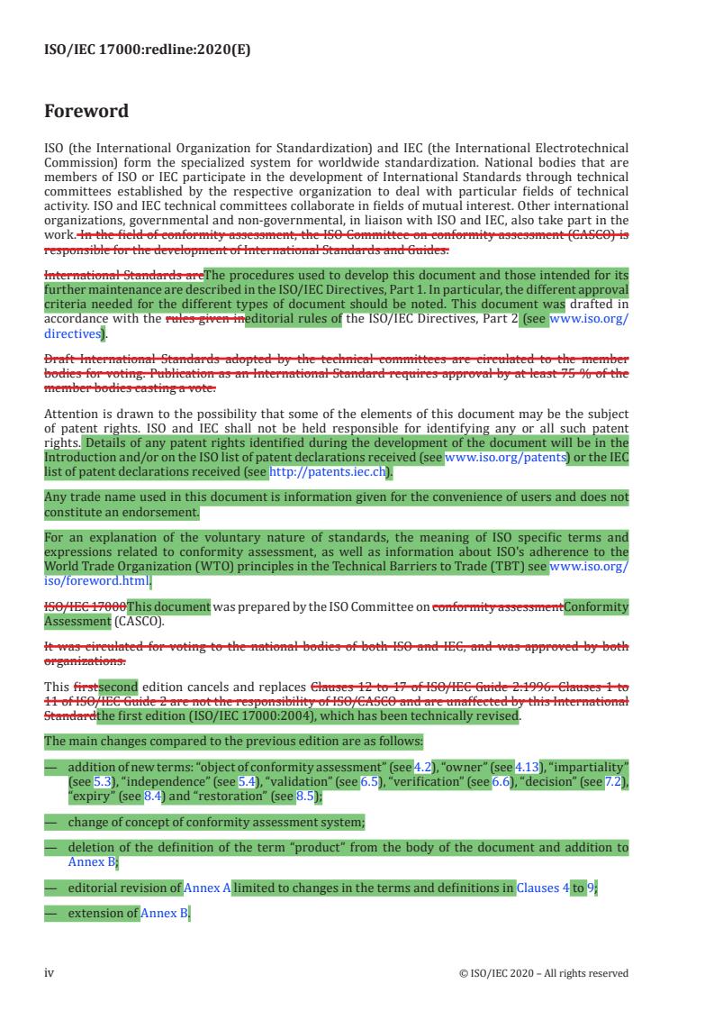 REDLINE ISO/IEC 17000:2020 - Conformity assessment — Vocabulary and general principles Released:12/1/2020