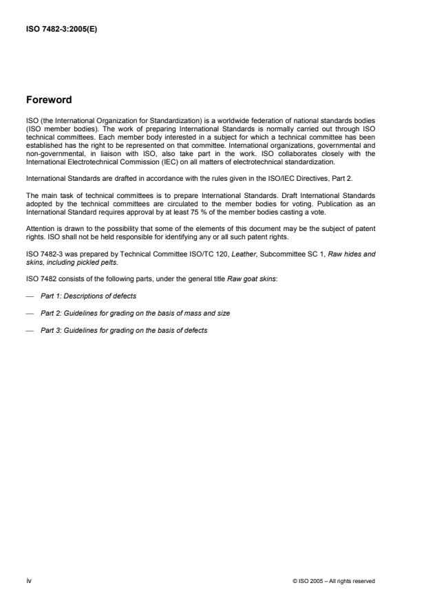 ISO 7482-3 was prepared by Technical Committee ISO/TC 120, Leather, Subcommittee SC 1, Raw hides and