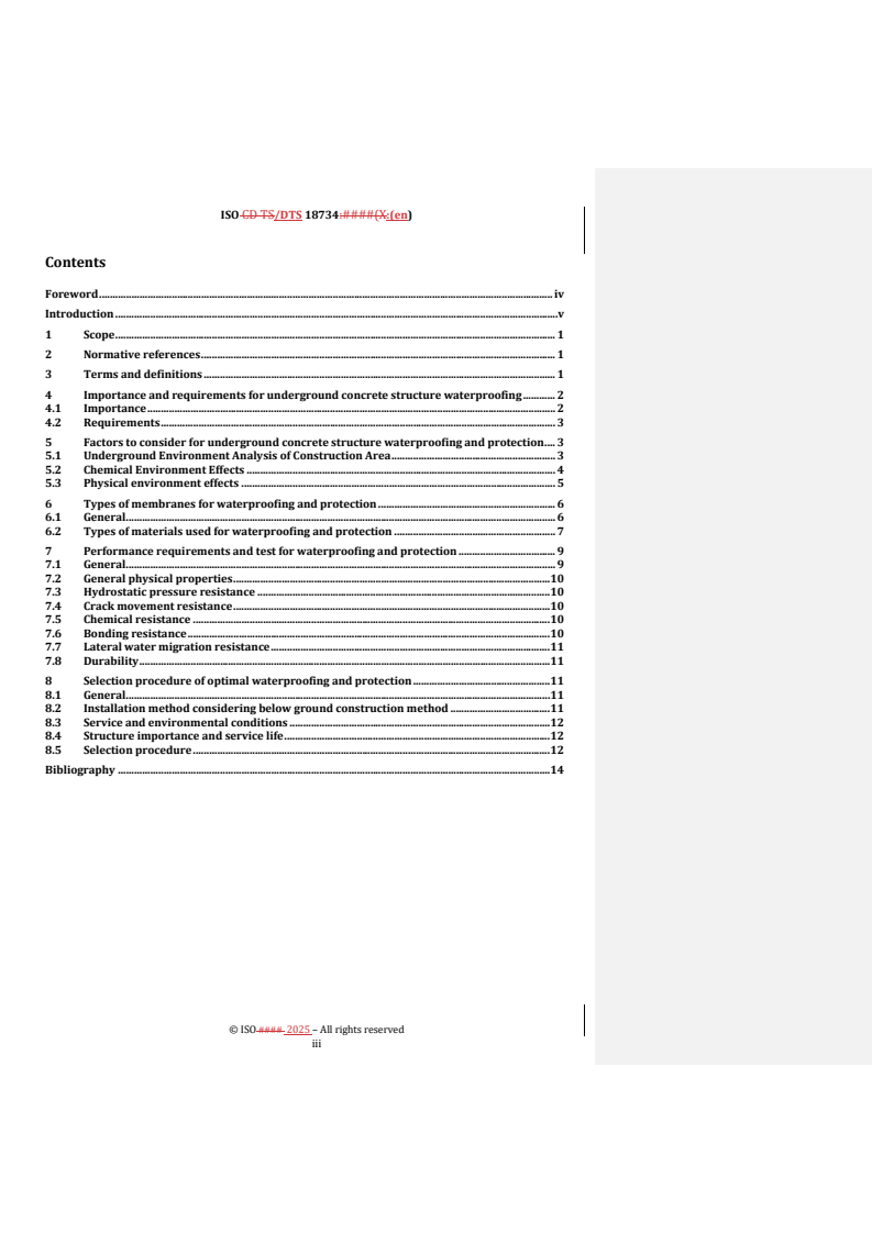 REDLINE ISO/DTS 18734 - Guidelines and requirements for elastic barriers, waterproofing and protection of underground concrete structures Released:9/23/2025