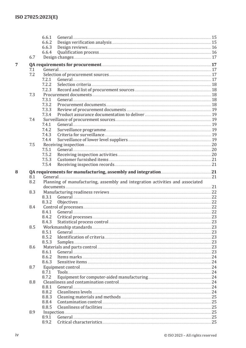 ISO 27025:2023 is a standard published by the International Organization for Standardization (ISO). Its full title is "Space systems - Programme management - Product quality assurance requirements". This standard covers: This document defines the quality assurance (QA) requirements for the establishment and implementation of product QA programmes for projects covering mission definition, design, development, production and operations of space systems, including disposal. It is applicable to the customer-supplier relationship for space products to the extent agreed by both parties.