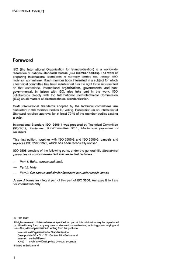 International Standard ISO 3506-1 was prepared by Technical Committee