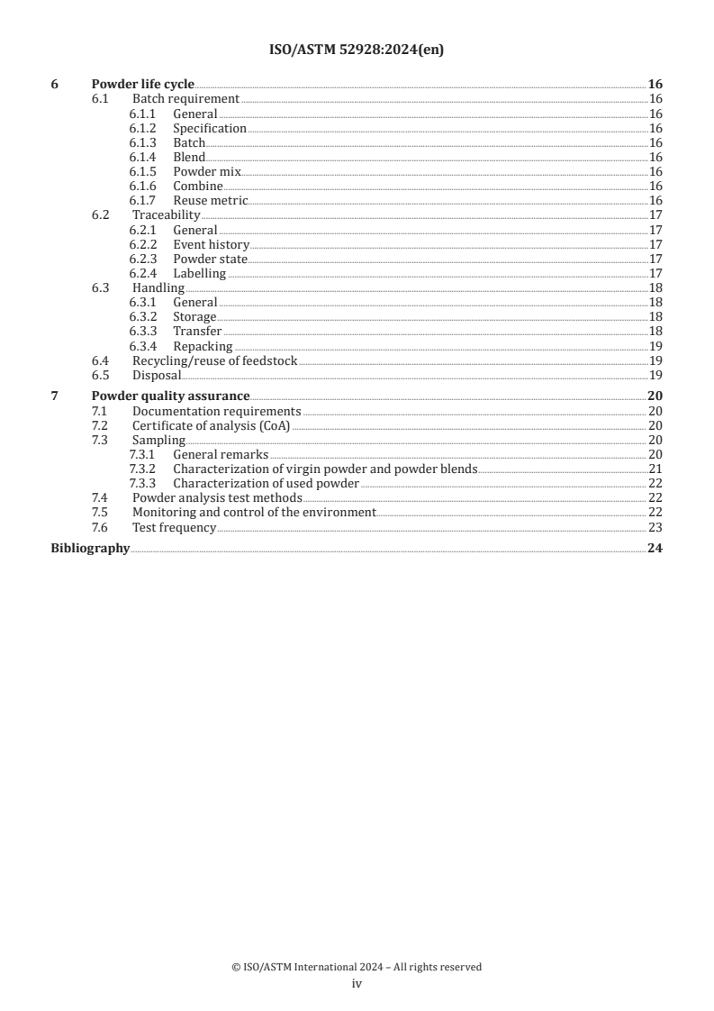 Keywords: ISO/ASTM 52928:2024, powder life cycle management, additive manufacturing of metals, metal powders, powder feedstock, powder properties, powder quality assurance, traceability, sampling, Certificate of Analysis.