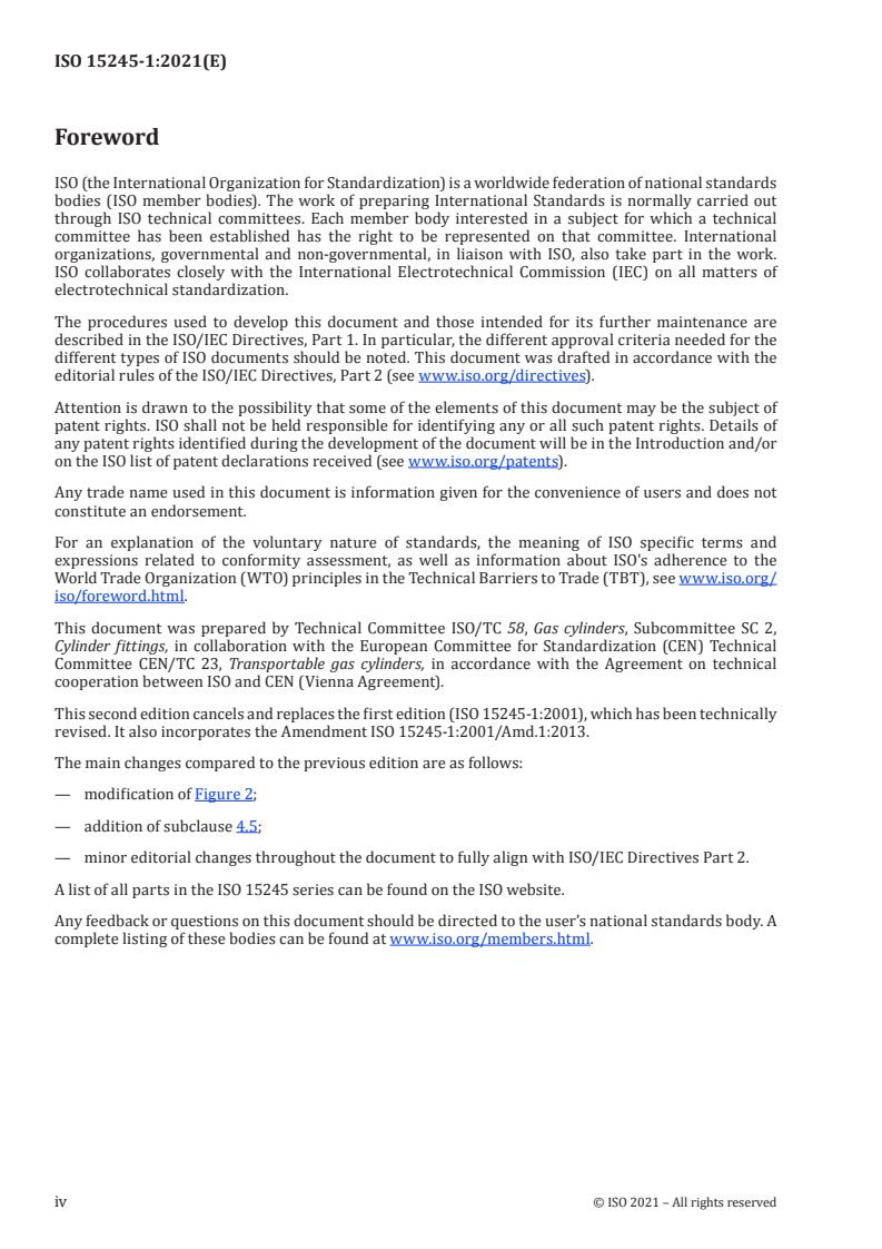 ISO 15245-1:2021 - Gas cylinders — Parallel threads for connection of valves to gas cylinders — Part 1: Specification Released:5/25/2021