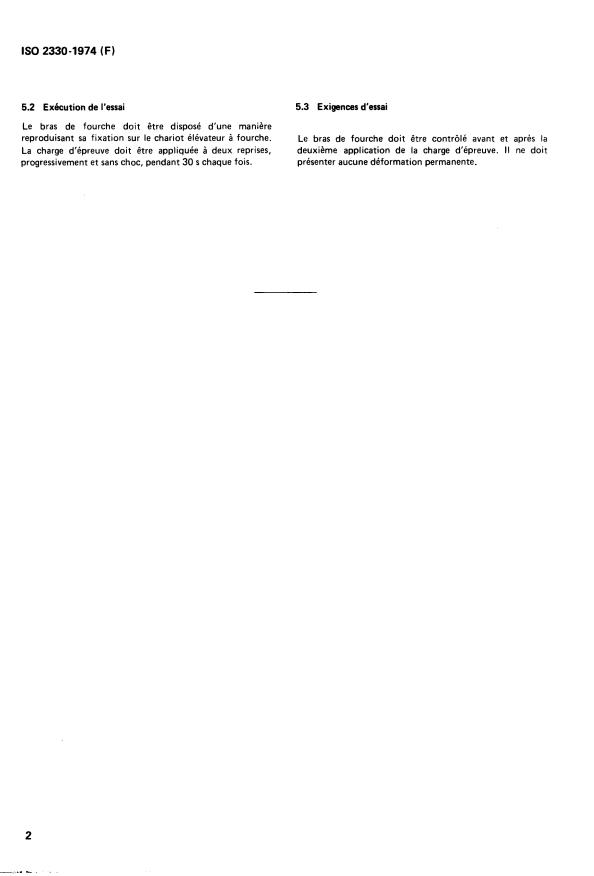 ISO 2330:1974 is a standard published by the International Organization for Standardization (ISO). Its full title is "Fork lift trucks — Fork arms — Technical characteristics and testing". This standard covers: Fork lift trucks — Fork arms — Technical characteristics and testing