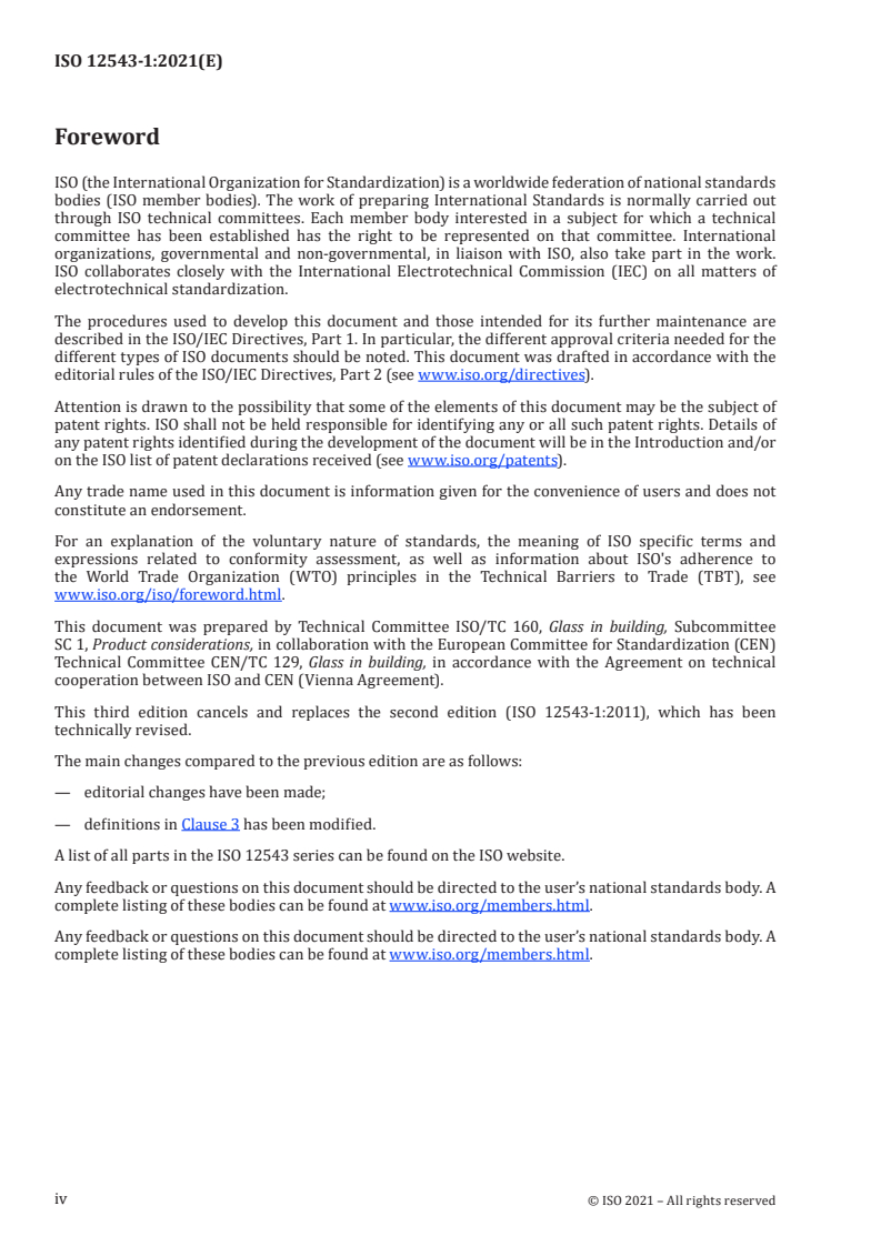 Cette troisième édition annule et remplace la deuxième édition (ISO 12543-1:2011), qui a fait l’objet